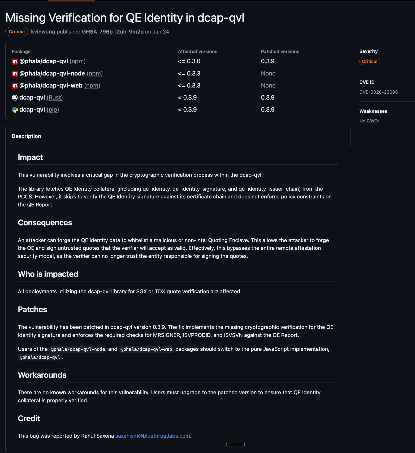 - GHSA: github.com/Phala-Network/dcap-qvl/security/advisories/GHSA-796p-j2gh-9m2q