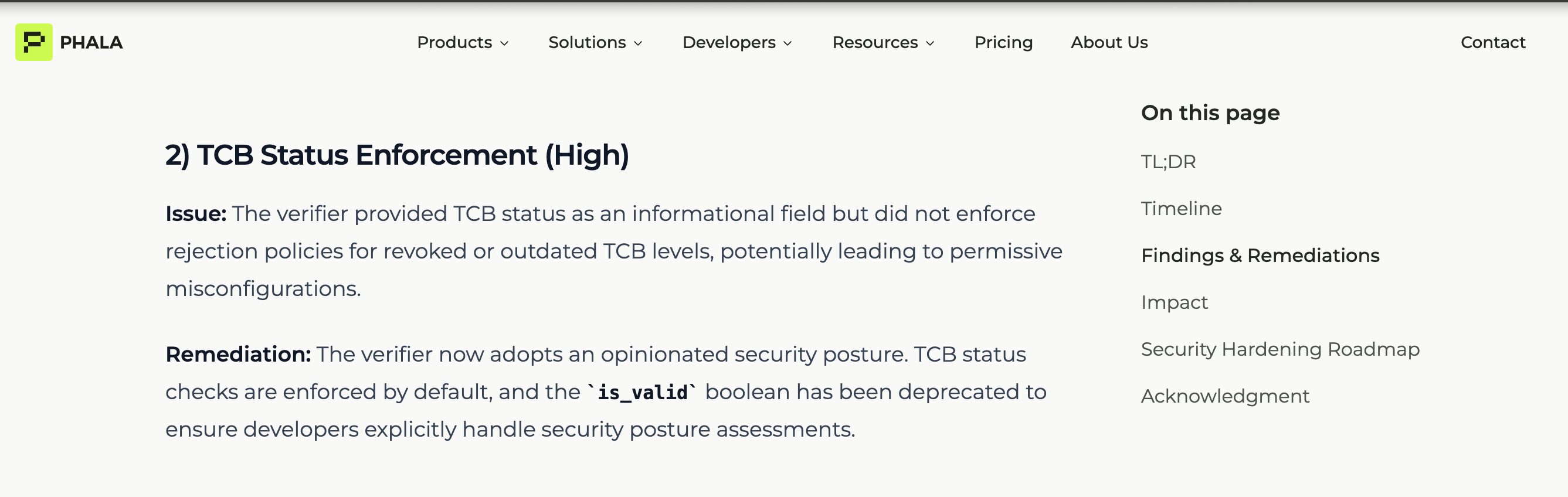 as needing security action.This matters because the gap sits on an authorization path, not an observability path. Even though KMS adds an extra UpToDate check, the shared verifier does not, and the stock app path shown here lacks the same guard. A developer integrating validate_tcb() would reasonably assume TCB validation was already complete. It was not.